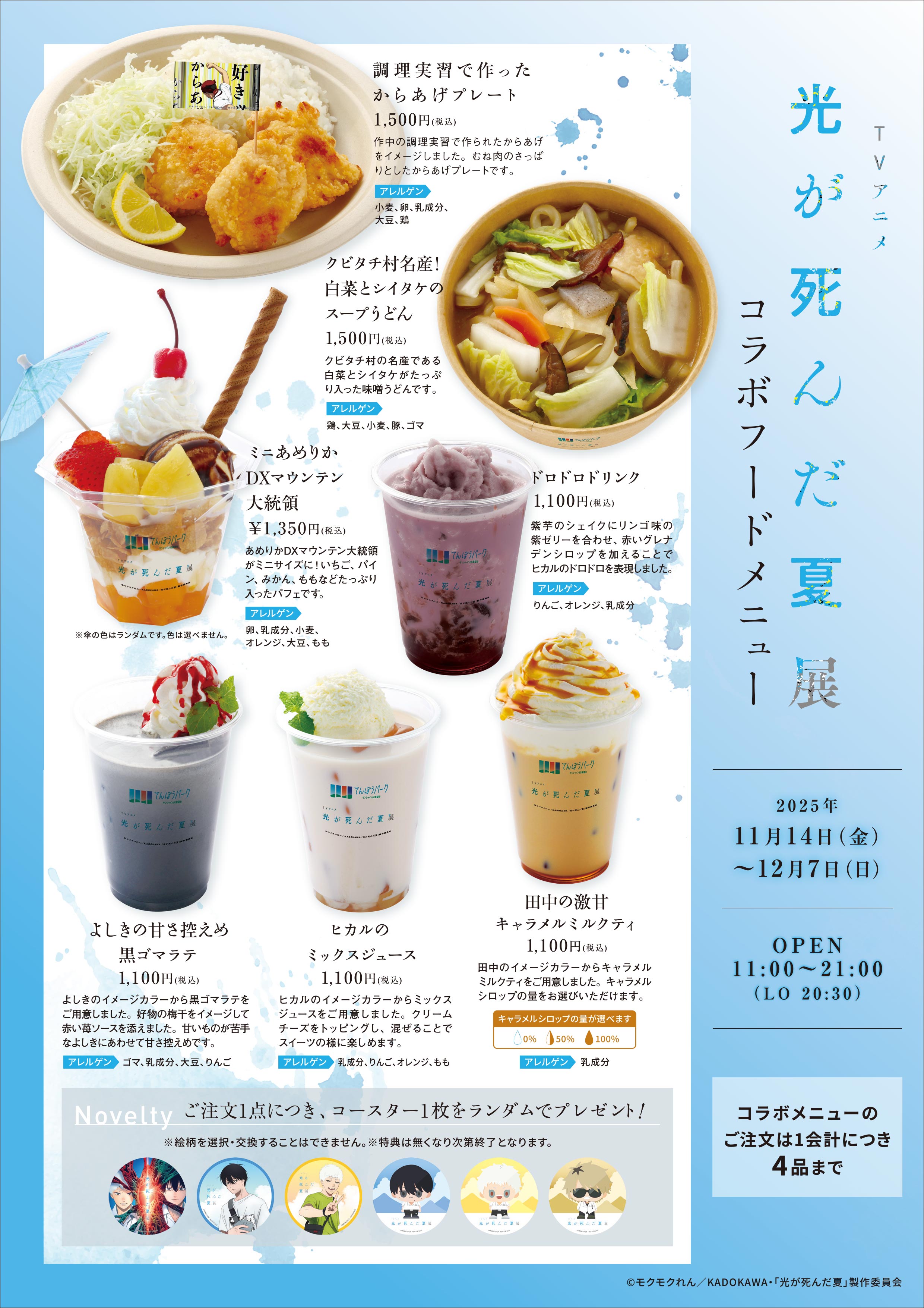 よしき・ヒカル・田中をイメージしたコラボドリンクや作中にでてきたフードなどが登場!